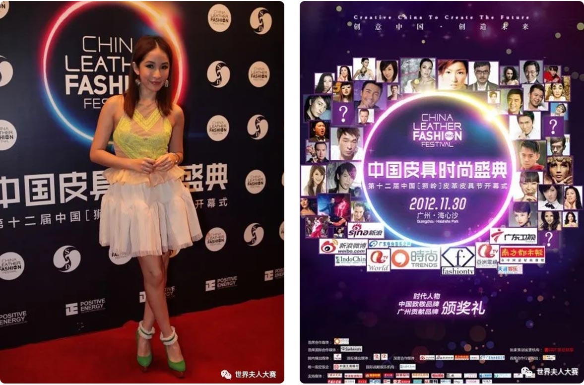 2012年11月30日,由kobe馮團隊全力協辦、被成為皮具行業的“感動中國”、皮具“奧斯卡“的中國皮具時尚盛典暨第十二屆中國(獅嶺)皮革皮具節在廣州海心沙盛大開幕,百變天后Sammi鄭秀文身穿紅色緊身皮衣驚艷亮相,傾情演繹經典之作。